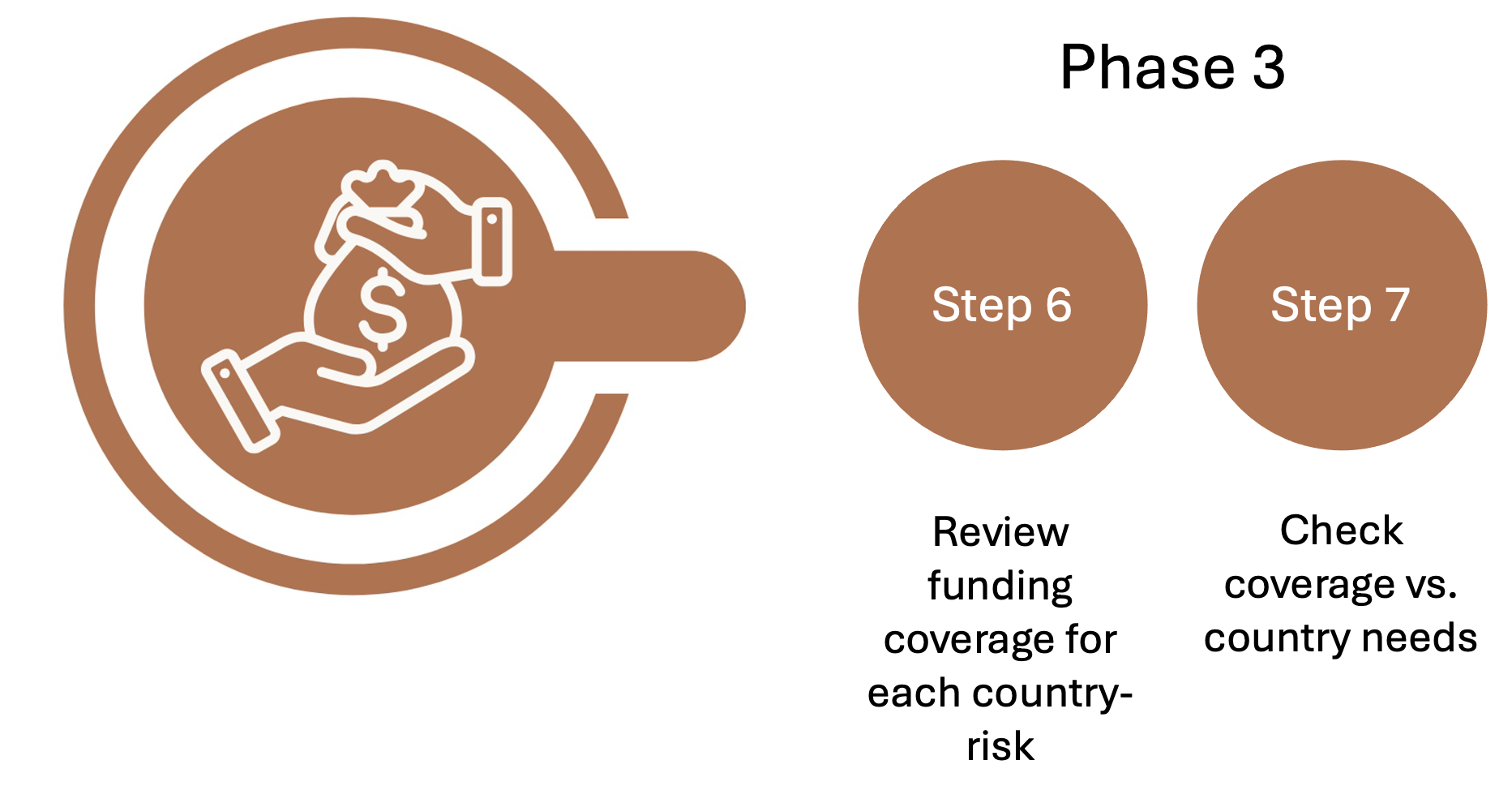 Each of the funding releases could also be utilised in different phases of a crisis for various objectives. For example, it might be triggered ahead of a crisis based on early warning data to try to increase preparedness, on impact for response or to recover and rebuild post-event. Considering what the funding will be used for and how it may be spread or phased operationally is also an essential consideration in the financial coverage. This can be considered matrix financing, with horizontal severity layers and vertical time windows of crisis. Some prepositioned funding will be expected to cover all phases, while others may be prioritised into specific window such as an anticipatory window or only for recovery.